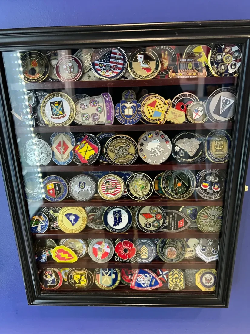 I’ve also noticed Challenge Coins in displays at various airport USOs. Some of the larger USOs have walls of hundreds of Challenge Coins displayed.